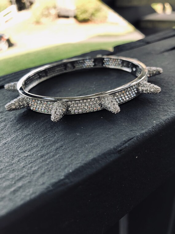 Spike Bracelet Diamond / Diamond Spike Open Cuff Bangle Atheria / Crafted from polished, warm tones of 14k yellow gold, its foundation offers subtle 0.48 ct diamond accents at the split center.. Ideal for everyday wear or to pair with a glamorous look for special occasions, this bangle will be your new favorite. Beautiful 14k gold bracelet, single.5cts diamonds spike. Cartier jewelry is a unique expression of a creator's style and imagination. Each spike is a little over a quarter of an inch wide Moving on to music blowing up quickly with.